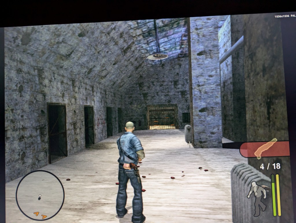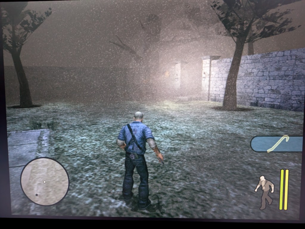 it’s winter, and when the rest of the family went to bed I like to play this game with all the lights out, as I like horror games. Manhunt for the PS2 is not really a horror game, but it is kind of creepy, as you play as an dead row inmate who got a chance to escape, if he does what some unknown person tells him to do through a earbud, this unknown person is recording some movie through camera’s who are mounted all over in the area in which you play.